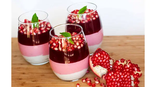 رکنا:مهمانی شب یلدا با خوراکی های رنگارنگ به یاد ماندنی تر می شود.دسر سه رنگ انار مخصوص این شب خاطره انگیز است.