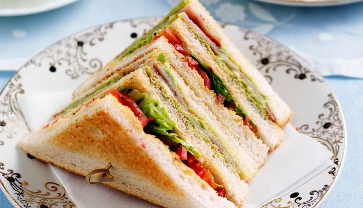 یک نان دیگر را به روش قبل برشته کنید. دوباره روی آن سس مایونز بمالید و روی آن قرار دهید. حالا کاهو و تخممرغی را که نیمرو کردهاید، روی نان قرار دهید. ورقهی پنیر را به چهار قسمت مثلثی برش دهید و روی بقیهی مواد بگذارید. در انتها گوجههای حلقه شده را روی ساندویچ قرار دهید.