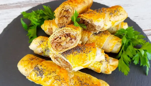 بهاینترتیب ادامه دهید تا همۀ یوفکاها پودری شوند. بورکهای سوخاریشده را داخل سینی فر قرار داده و درون فری که ۱۵ دقیقه روشن و با ۲۰۰ درجه سانتیگراد گرم شده است قرار دهید. بعد از سرخشدن بورکها آنها را بردارید. بورک ترکیهای ما آماده است. بوی دلپذیر و طعم خوشمزه آن بسیار اشتهابرانگیز است. امیدوارم غذای امروز ما را پسندیده باشید.برای ورود به کانال تلگرام ما کلیک کنید.