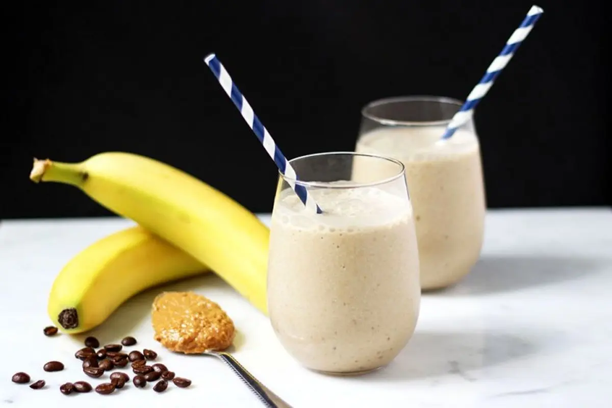 حالا قالب های قهوه یخ زده + یک لیوان شیر سرد + یک شماره موز بزرگ + یک قاشق غذاخوری کره بادام زمینی + یک قاشق غذاخوری عسل «اگر طعم قهوه بدون شیرینی را دوست دارید می توانید حذف کنید» + یک قاشق غذاخوری پودر کاکائو را داخل مخلوط کن بریزید و هم بزنید تا کاملا یکنواخت شود. بعد داخل لیوان ریخته و نوش جان بفرمایید.