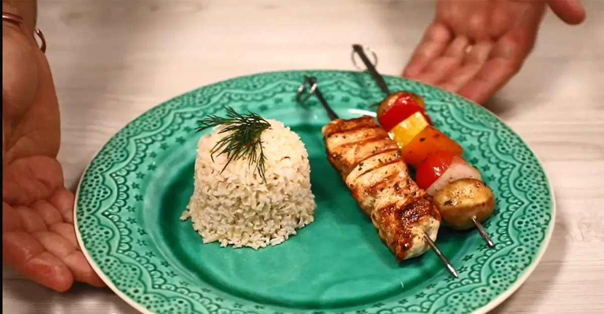 حالا سیخ جوجهها و گوجه فرنگی و قارچ را داخل ماهیتابه چدنی یا روی گریل میگذاریم و مقداری از سس مخصوصی را که تهیه کردهایم روی آنها میمالیم. در هنگام طبخ چندبار کبابها را این طرف و آن طرف میکنیم تا کاملا بپزند.