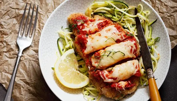 در آخرین مرحله، قالب را برای سی دقیقه در فر ۱۸۰ درجه سانتیگراد قرار داده و سپس خارج کنید. خوراک مرغ پارمسان شما آمادۀ سرو است. امیدواریم که از طعم بینظیر آن لذت ببریدبرای ورود به کانال تلگرام ما کلیک کنید.