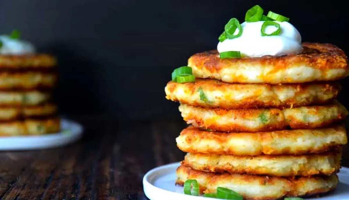 رکنا: پنکیک سیب زمینی پنیری یک غذای فوری با عطر سیر و لذیذ است.