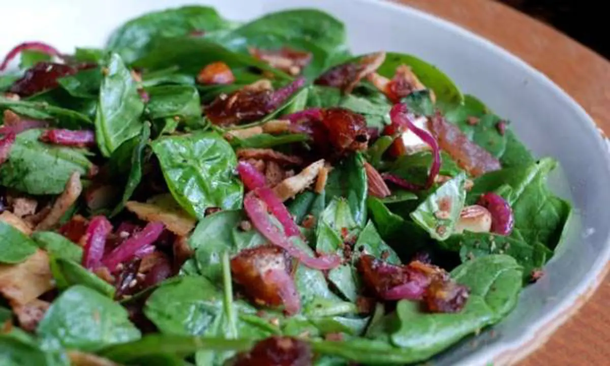 روغن زیتون را در تابه بریزید و هنگامیکه کمی گرم شد، اسفناج ها را درون آب بریزید و تا جایی که تیره رنگ و پلاسیده شوند آن را بپزید. سپس آنها را به همراه بقیه مواد در کاسه سالادتان بریزید و در نهایت با سس تند نوش جان کنید!
