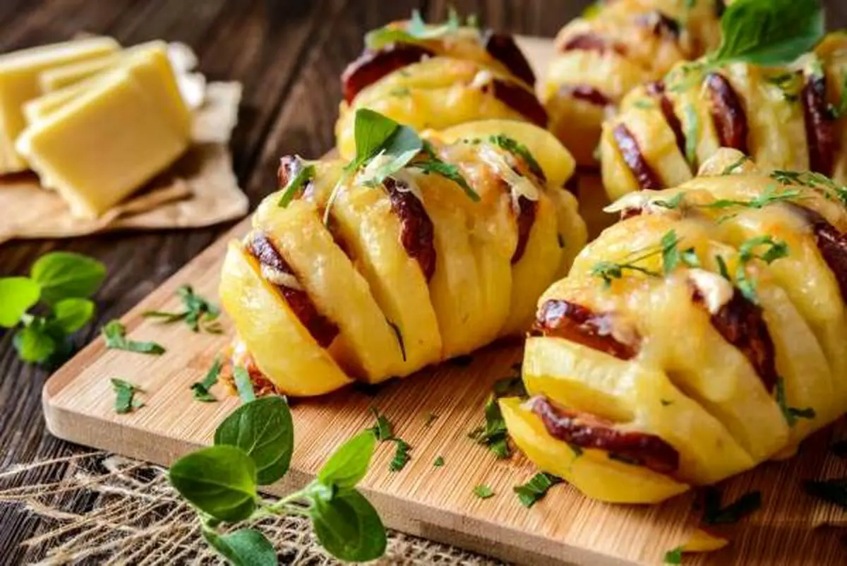 سیب زمینی شکم پر با سوسیس پنیری+دستور تهیه