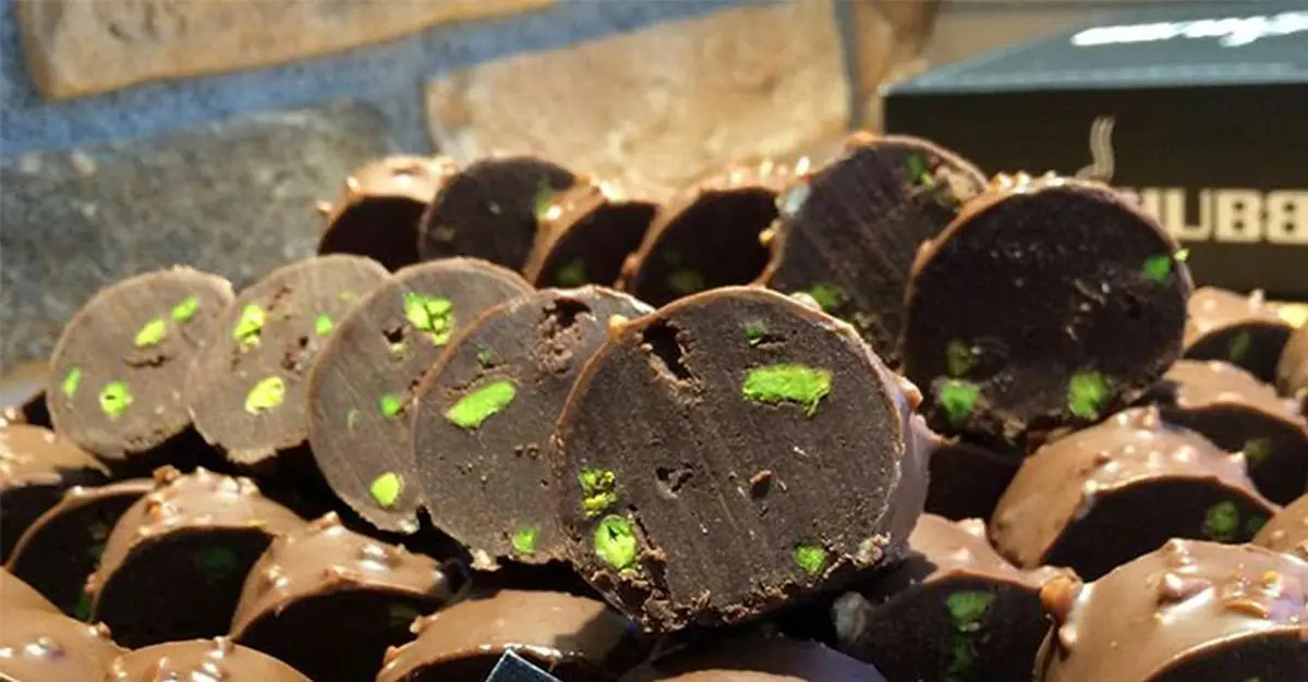 کیک ساده را خرد کنید و درون یک کاسه متوسط بریزید و با همزن برقی پودر کنید و بعد به ترتیب کره، مارمالاد، پسته خرد شده، خامه و در نهایت شکلات را اضافه کنید و به مدت ۳۰ دقیقه در فریزر قرار دهید.