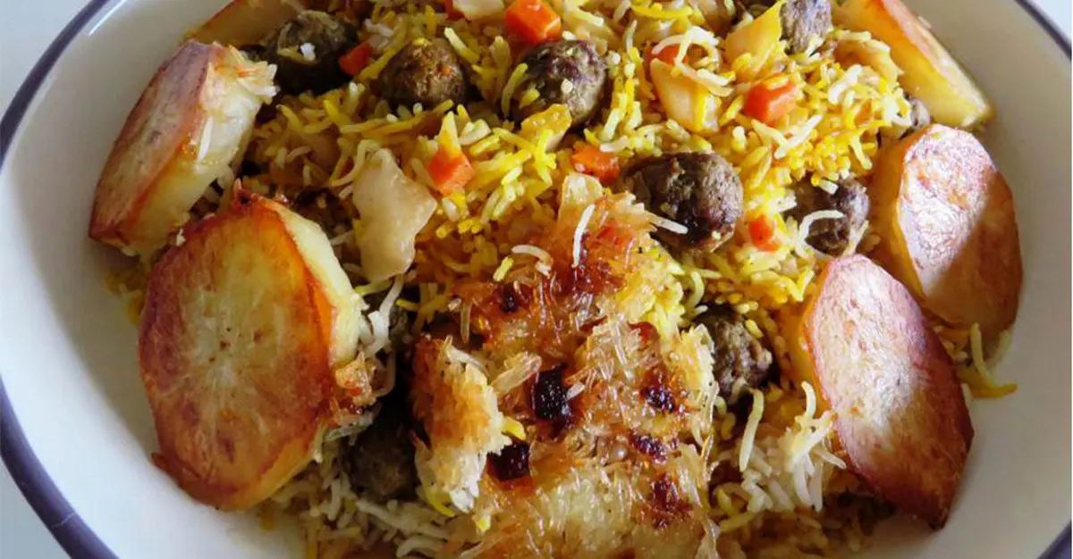 میتوانید گوشت هنگام پخت برنج لا به لای آن نریزید و هنگام سرو برای تزیین از آن استفاده کنید.