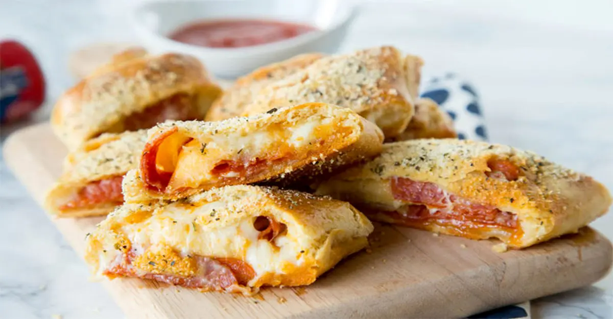 خمیرها را پهن کرده و روی آنها مخلوط تخم مرغ و ژامبون و مقداری پنیر بریزید. دقت کنید که کنارههای خمیر را هم مواد بریزید.
