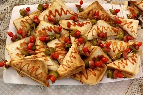 9. بعد از چند دقیقه که اسنک ها کمی برشته شدند آنها را از داخل ساندویچ ساز بیرون بیاوردید و داخل ظرف مورد نظر خود بچینید و با سس مورد علاقه خود سرو کنید.