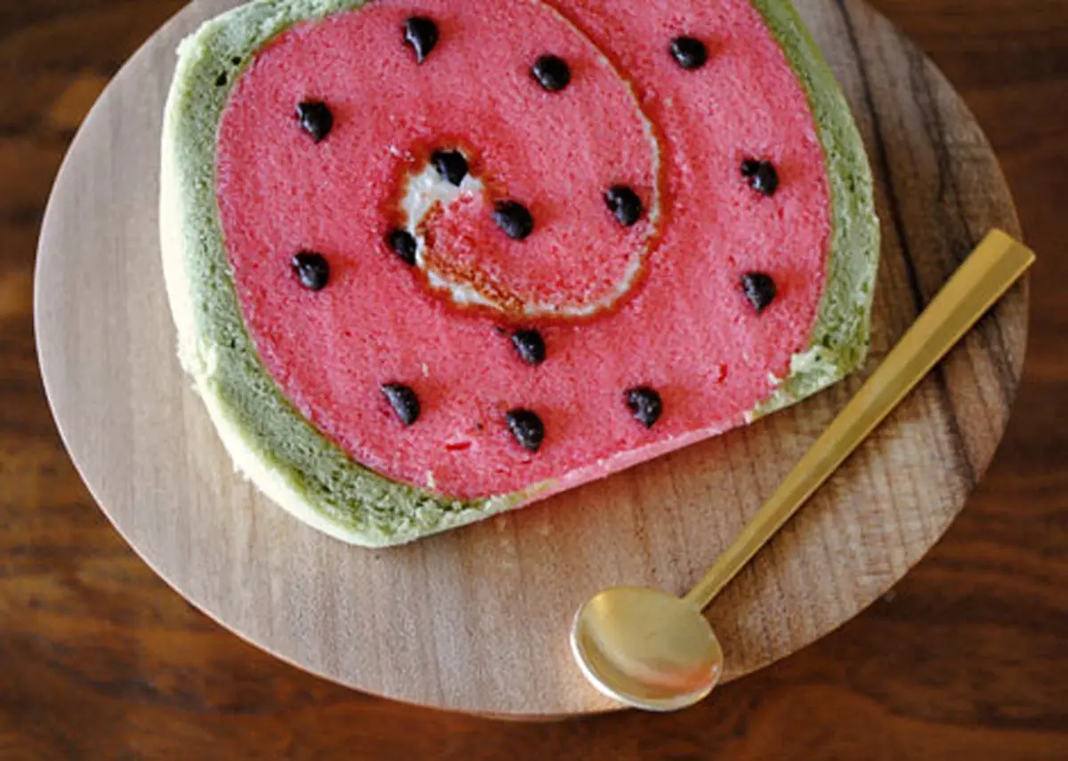 رولت را حداقل برای ۴ ساعت داخل یخچال قرار دهید. سپس برش بزنید و تخم هندوانههای شکلاتی را روی آن بریزید.