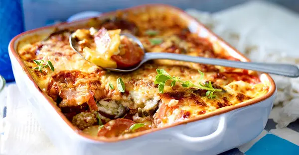 رکنا: موساکا با پنیر موزارلا با بادمجان تهیه می شود و خوشمزه ترین غذای فوری است.
