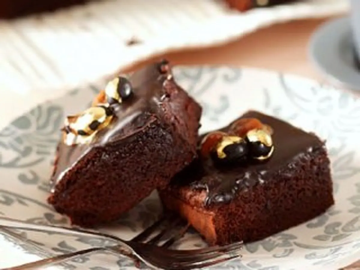 فر را با دمای ١٦٠ درجۀ سانتیگراد گرم کنید و دیواره و کف قالب مربع به ضلع ٢٠ سانتیمتر را با کاغذ روغنی بپوشانید.