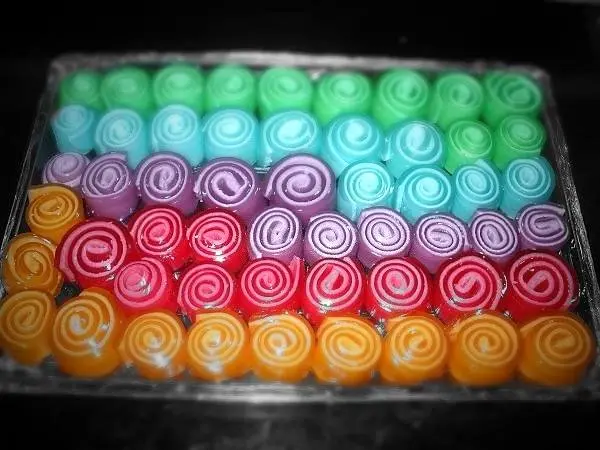 بعد از اینکه همه ژله را رول کردید آن را در دیس پذیرایی بپچنید و با شکلات های رنگی تزیین نمایید و ژله ها را به مدت 2 ساعت دیگر در یخچال قرار دهید تا خوب بسته شود.