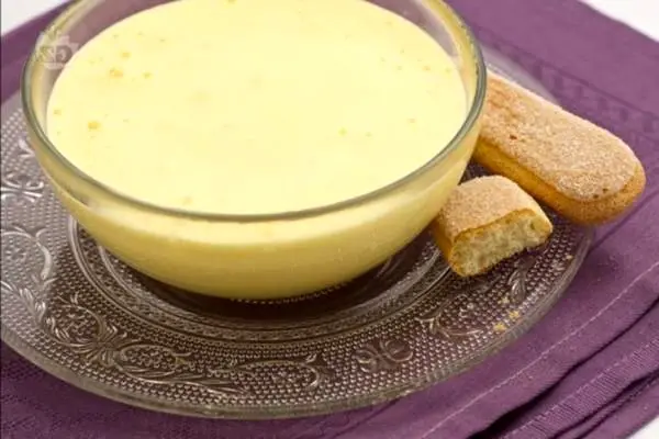 شکر را به زرده ها افزروه و با هم زن برقی خوب هم بزنید تا زمانی که رنگ آن به سفیدی بزند حالا مخلوط را با حرارت غیر مستقیم به مدت 10 دقیقه هم بزنید تا دسرتان آماده شود.