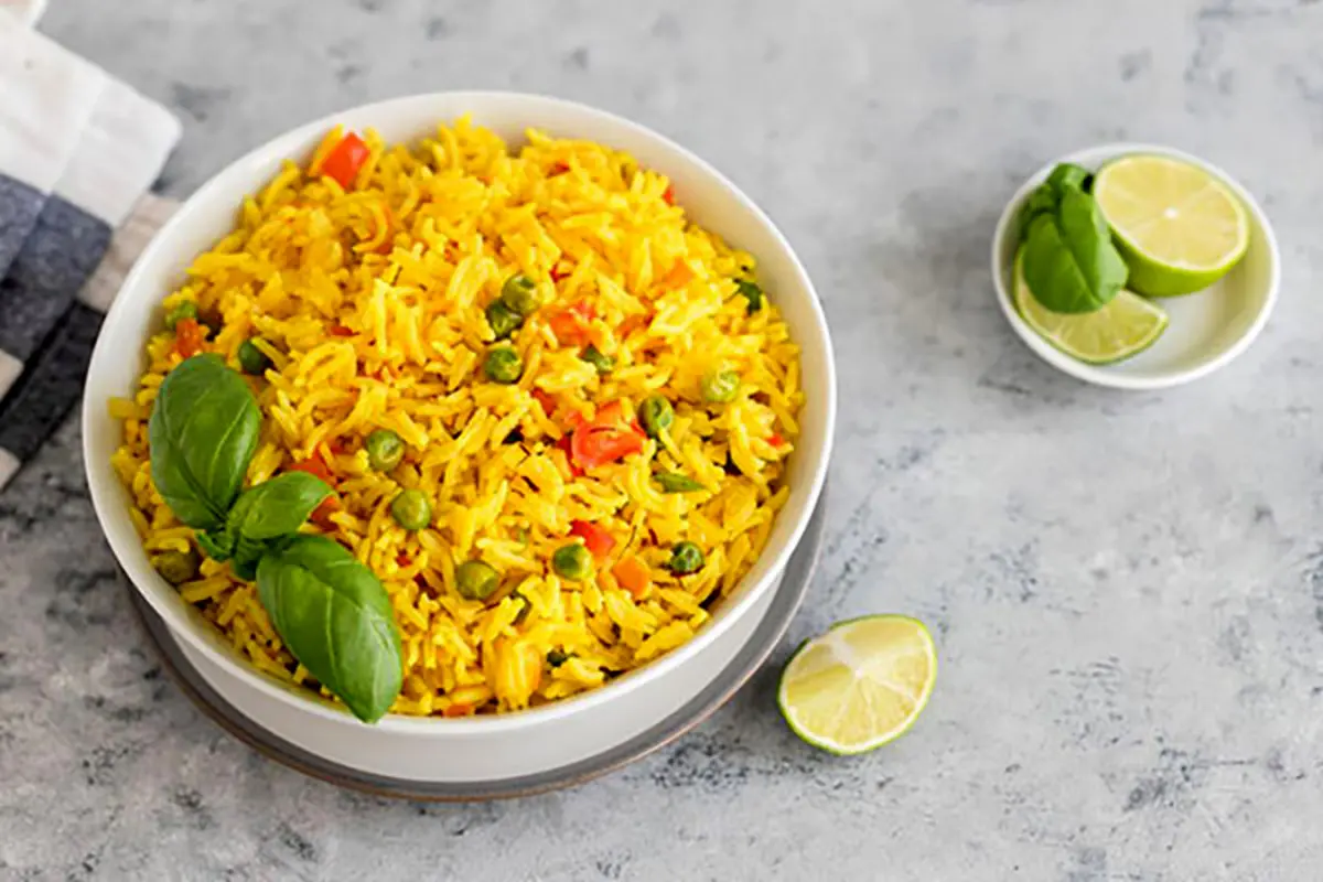 ۹. درب قابلمه را بگذارید و گاز را خاموش کنید. حالا بگذارید قابلمه روی همان شعله خاموش بماند تا با گرمای باقیمانده گرم شود. حدود ۱۰ دقیقه یا تا زمان سرو کردن بگذارید روی شعله خاموش بماند. حرارت باقیمانده داخل قابلمه کمک میکند تا هر مقدار آبی که داخل قابلمه مانده، جذب شده و برنج به طور کامل بپزد و دم کند. همچنین نخود سبز فریز شده را به نحو خوبی میپزد. برنج به این روش به مدت ۱ ساعت یا بیشتر گرم خواهد ماند که زمانی را به ما برای آماده کردن چیزهای دیگر مثل سالاد میدهد.