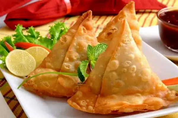 رکنا: سمبوسه به عنوان یک پیش غذا یا میان وعده سرو میشود. محتویات سمبوسه سنتی سیبزمینی و پیاز و سبزیجات معطر است.