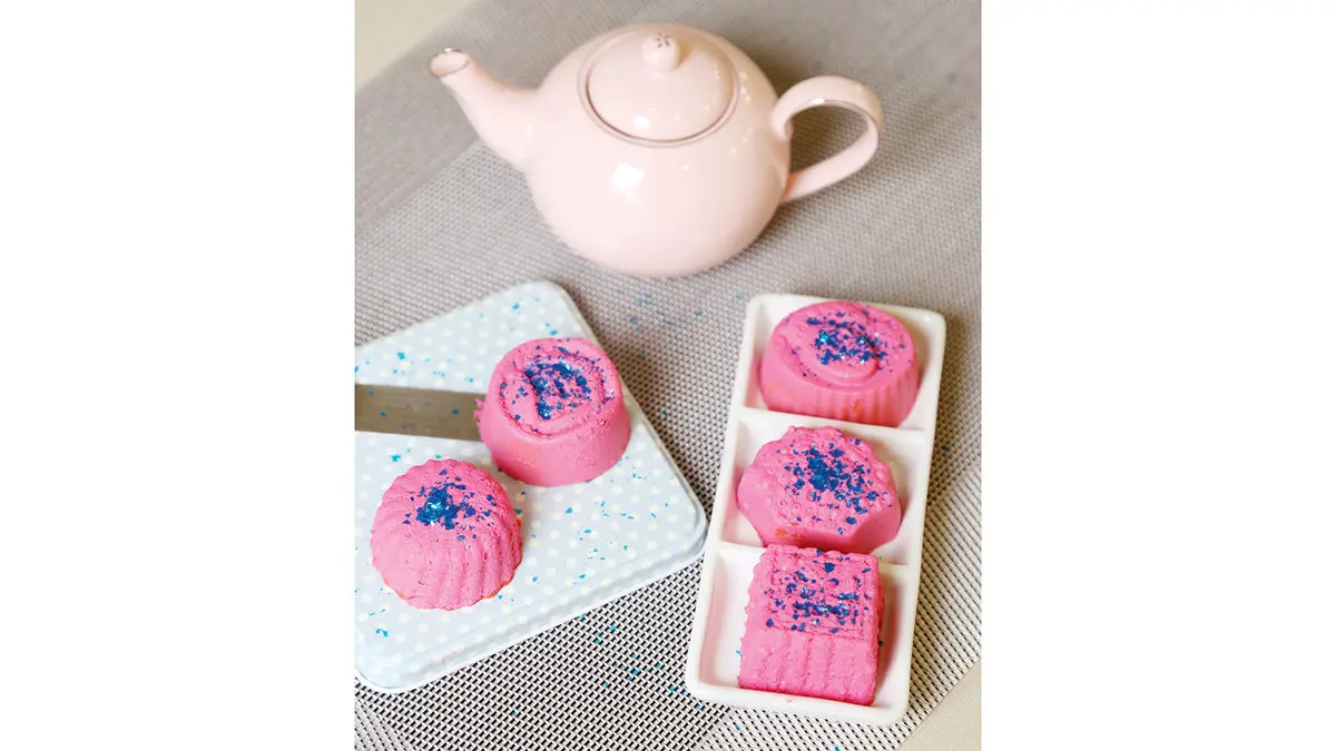 4 وقتی مواد کمی از داغی افتاد این مایه را داخل قالب سیلیکونی بریزید و در فریزر بمدت 3 الی 4 ساعت بگذارید و بعد از این مدت در یخچال قرار دهید. این کار باعث می شود تا دسر شما به راحتی از قالب سیلیکونی جداشود. بعد از اینکه دسرها را از قالب بیرون آوردید روی دسر را با اسپری مخملی و پودر آبی تزیین کنید.