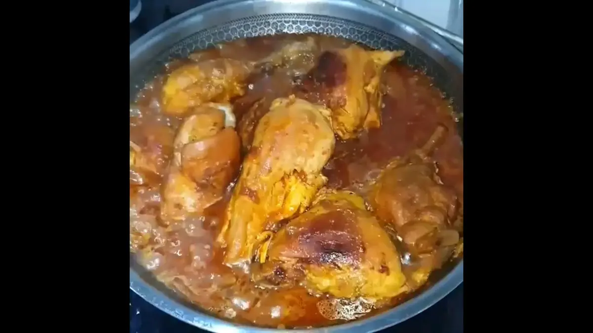 پیاز ها را نگینی ریز کرده داخل روغن تفت داده پس از کمی طلایی شدن، رب گوجه، ادویه ها و نمک را داخل آن ریخته و تفت می دیم، مرغ های سرخ شده را به همراه دو لیوان آب اضافه می کنیم، بعد جوش آمدن درب ماهیتابه را قرار داده و با شعله کم برای یک ساعت و نیم می پزیم بعد زعفران دمکرده و آبغوره را اضافه می کنیم، پس از ده دقیقه مرغ ما آماده هست.