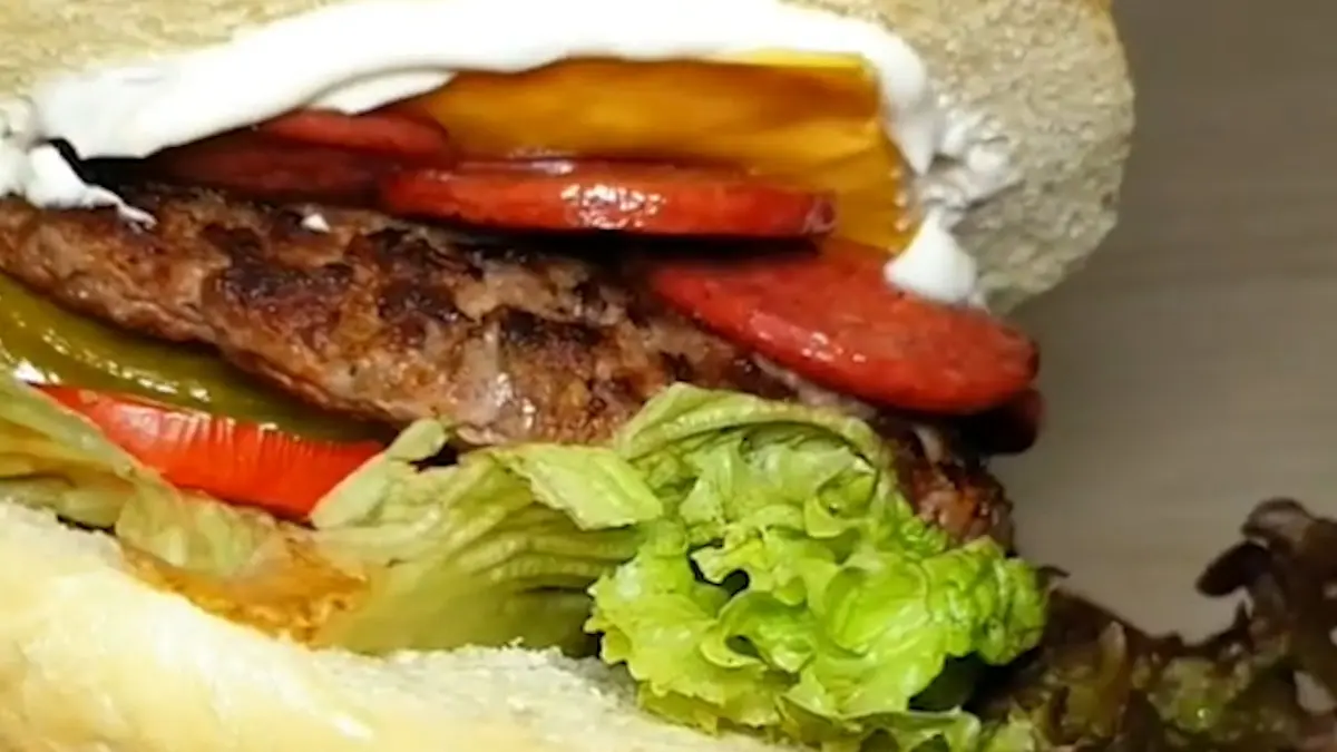رکنا : برگر از غذاهای گوشتی و پرطرفدار است که یک نوع آن با سوسیس درست می شود.