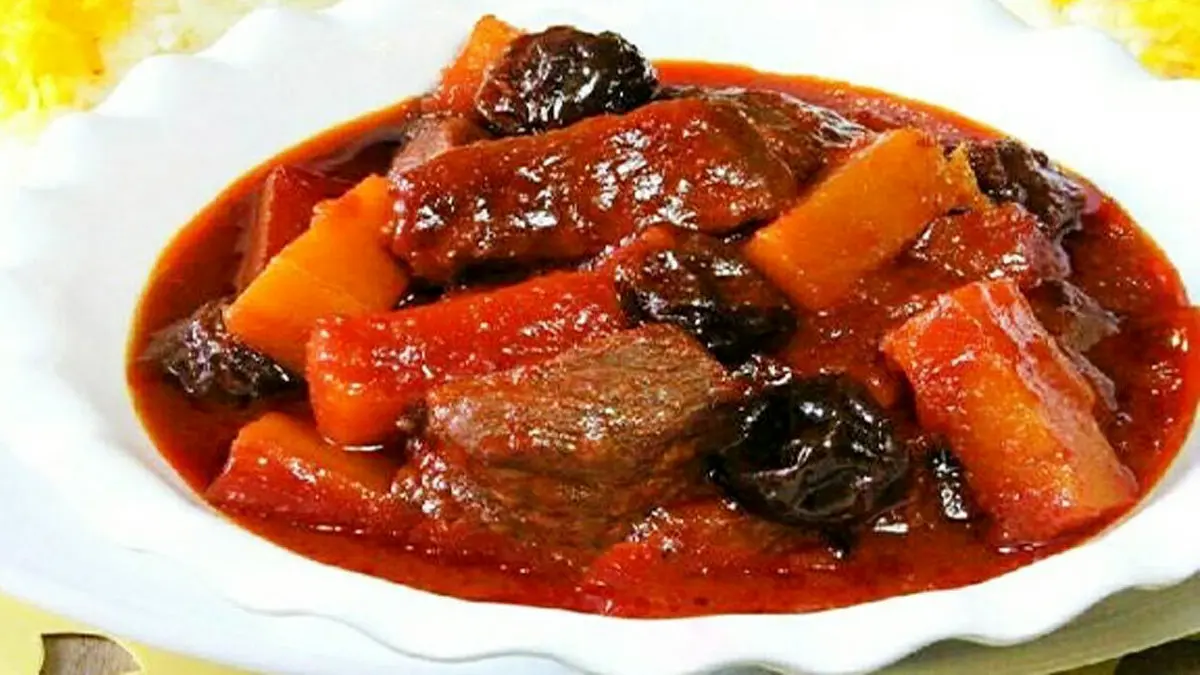 11- آلو و رب گوجه فرنگی را در آخر پخت به ظرفی که حاوی گوشت است اضافه کنید و اجازه دهید بمدت 1 ساعت با حرات ملایم پخته شود.