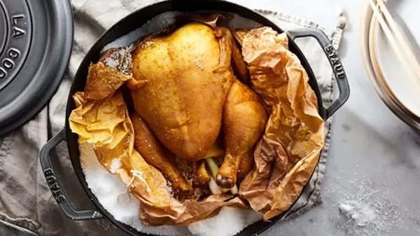 نگران شور شدن این مرغ نباشید. اگرچه این مرغ روی نمک طبخ میشود، هرگز شور نخواهد شد.