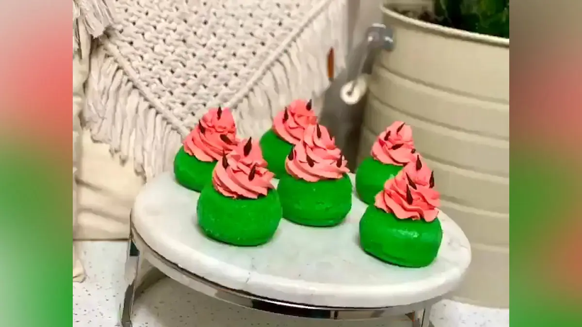 برای رنگ قرمز هندوانه به خامه تان رنگ خوراکی قرمز (بهتر است ژله ای باشد) اضافه کنید.