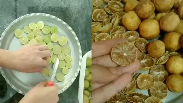 یک قابلمه آب در حال جوشیدن را بردارید و یک استکان سرکه به آن اضافه کنید و سپس لیموترش را داخلش بریزید و به مدت یک دقیقه زمان بدهید تا رنگش تغییر کند. سپس از آب خارج کنید و آب سرد رویش بریزید تا دچار شوک شود، مجدد لیموها را به قابلمه آب جوش برگردانید و به مدت 2 دقیقه زمان بدهید تا بجوشد. سپس کلا آبکش کنید و زمانی که کمی سرد شد با خلال دندان چند تا سوراخ دور تا دورش بزنید تا وقتی در آفتاب قرارش می دهید داخلش خوب خشک شود.