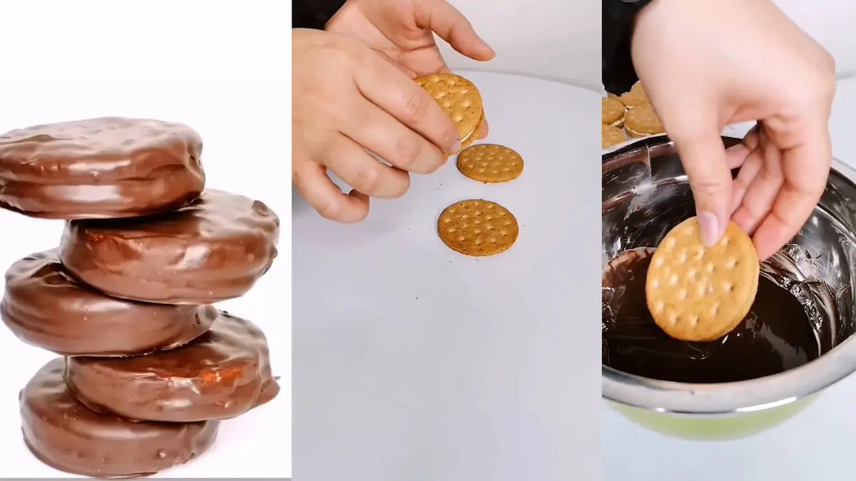 حالا با سرعت عمل *چون ژله فرم گرفته زود سفت می شود * ژله را داخل قیف بریزید و کمی بین 2 بیسکویت بگذارید. بیسکویت ها را نیم ساعت بگذارید داخل یخچال. بعد از نیم ساعت شکلات را بن ماری کنید و داخلش روغن مایع بریزید و بیسکویت ها را داخل شکلات بزنید و روی کاغذ روغنی بگذارید و دوباره یک ساعت در یخچال استراحت بدهید. شیرین عسل خوشمزه مان آماده است.