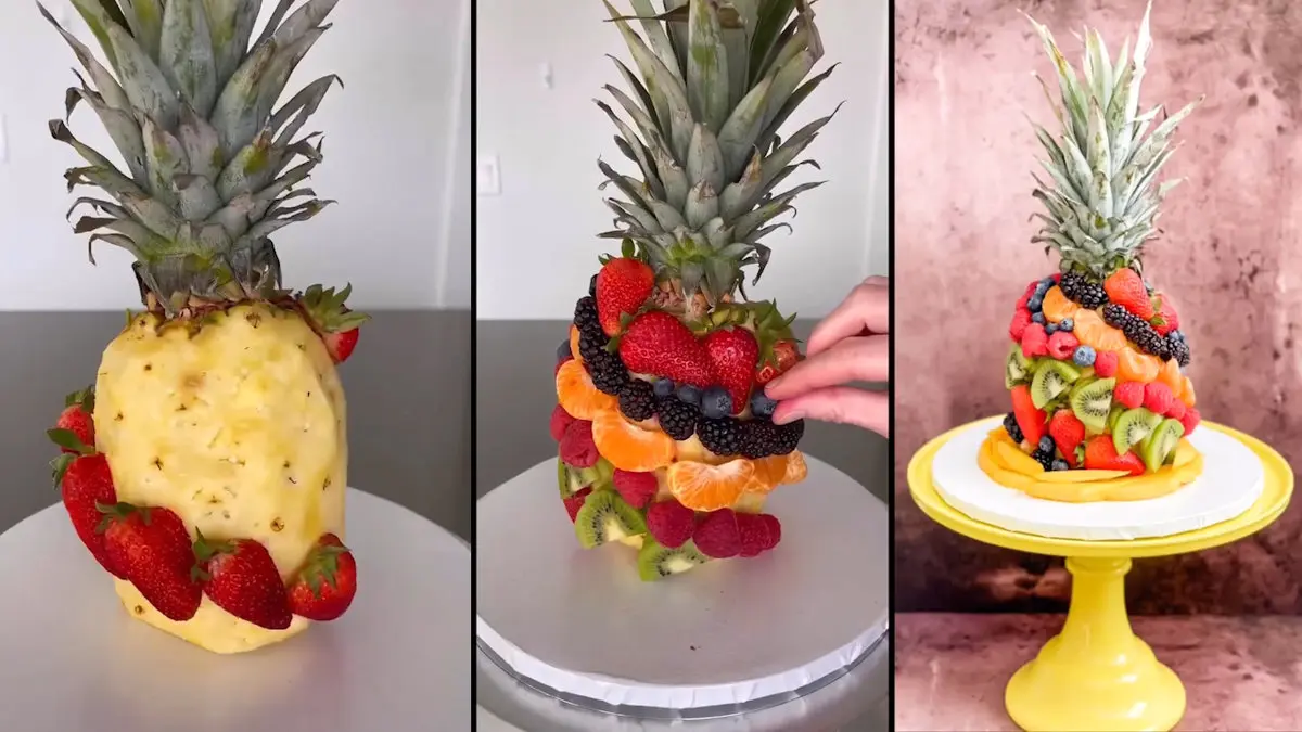 به گزارش رکنا، برای اینکه بتوانید روی آناناس میوه آرایی کنید کافی است در بخش های مختلف یک آناناس کامل پوست کنده خلال دندان های متعددی را فرو کرده و در هریک از آنها به شکل ردیف اریبی میوه های برش زده مانند کیوی، توت فرنگی، شاه توت ، نارنگی و ... را بچینید. در پایان لایه لایه میوه های رنگی را روی سطح آناناس خواهید داشت که زیبایی خاصی را به کار شما می بخشد.