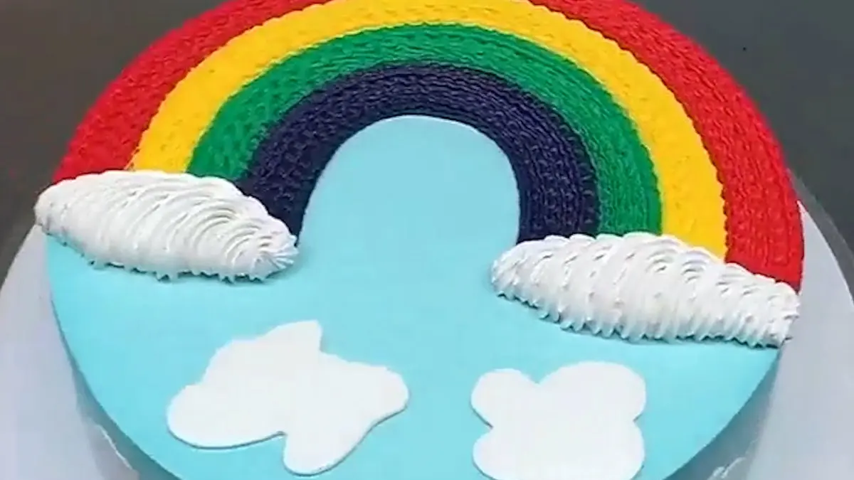 به گزارش رکنا، در این فیلم می بینید که روی سطح یک کیک ساده با خامه آبی رنگ که حکم آسمان را دارد ابتدا توسط یک خلال دندان لایه های کمانی برای مرزبندی لایه های رنگین کمان با خراش های نازک ایجاد شده است. سپس هر ردیف را همچون رنگین کمان با خامه های خوراکی رنگی پر کرده ایم. در پایان برای اینکه حس آسمان طبیعی را بیشتر به وجود بیاوریم می توان از خامه سفید کمک کرد و آن را به شکل ابرهای آسمان روی باقیمانده سطح کیک ریخت.