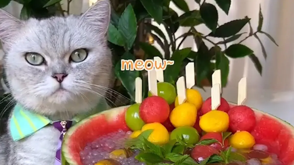 به گزارش رکنا، یک گربه مهارت زیادی در آشپزی دارد که در این فیلم مشاهده می کنید او یک دسر میوه ای مختص تابستان درست کرده است. او از عجیب ترین گربه هاست. کافی است هندوانه‌ را برش زده و اسکوپ هایی از میوه های مختلف مانند خود محتویات هندوانه را به همراه انبه و کیوی در قالب یخ ریخته و روی آن چای سبز بریزید. پس از مدتی ژله میوه ای خواهید داشت. آن را از قالب درآورده و در بخش خالی شده هندوانه می ریزید و بعد با تخم شربت و آب گازدار و نعناع روی آن را پرکرده و نوش جان می کنید.