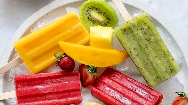 2. پوره میوه را بین 4 قالب بستنی (4 اونس) تقسیم کنید و روی قالب ها را درپوش بگذارید. حداقل 4 ساعت در فریزر قرار دهید تا سفت شود.