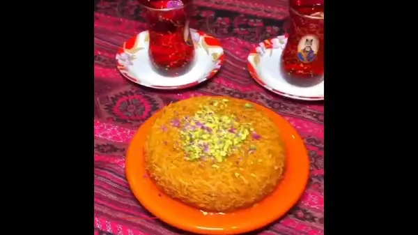 زمانی که روی کنافه ترکی طلایی و خوشرنگ شد، قالب را از فر خارج کرده و شربت خنک شده را به صورت پخش روی آن می ریزیم تا شربت جذب آن شود، سپس به دلخواه با پودر پستهو گل محمدی تزیین می کنیم.