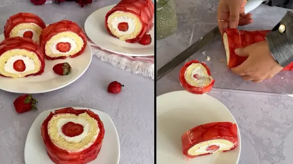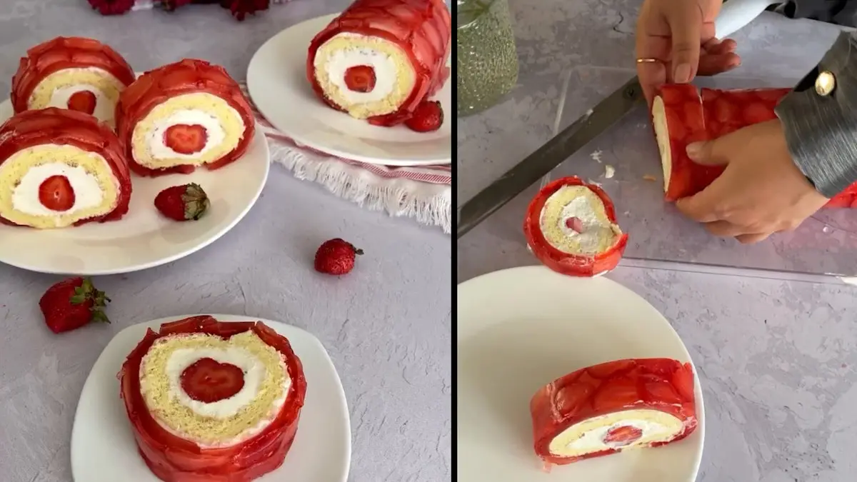 رولت توت فرنگی یک عصرونه پاییزی بهاری + فیلم