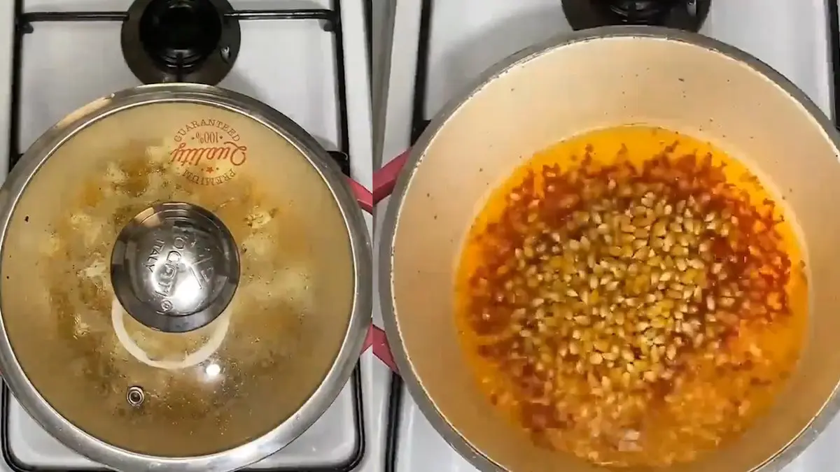 برای پفیلای کچاپی ممکن است اول کمی ته بگیرد ولی مدام که ظرف را تکان بدهید ذرت ها باز می شود و به پفیلا تبدیل می شود و نمی سوزد.