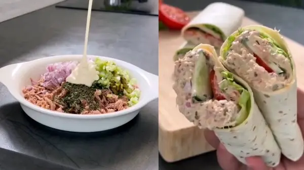 می توانید به جای سس مایونز از ماست استفاده کنید. مراحل تهیه این ساندویچ در فیلم مشخص است.