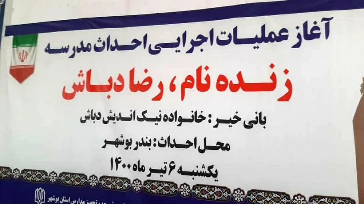 خانواده زنده نام رضا دباش تصمیم گرفتند در سالگرد فوت فرزندشان مدرسهای با نام و یاد او بسازند بر همین اساس امروز ساخت این مدرسه دوازده کلاسه، با زیربنای دو هزار و ۵۰۰ مترمربع در بوشهر آغاز شد.