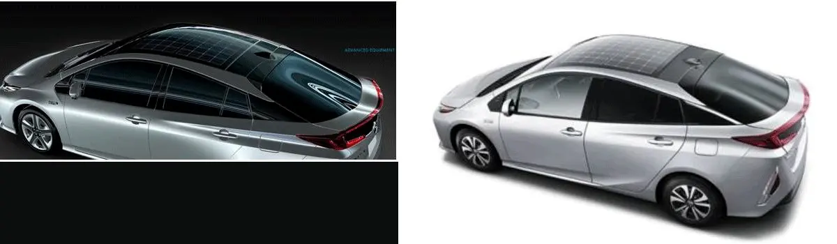امروزه طرحهای مفهومی از سقفهای خورشیدی برای خودروها در دنیای ماشین دیده میشود. تویوتا اولین خودروساز مطرحی بود که چنین آپشنی برای پریوس هیبریدی مدل ۲۰۱۲ ارائه داد. حالا نیز پاناسونیک به دنبال ساخت سقفهای فتوولتائیک برای آخرین مدل از پریوس است. میزان برق قابل تولید این پنلها از ۵۰ تا ۱۸۰ وات متغیر است.