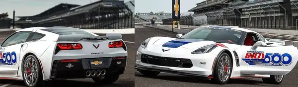 در تاریخ برگزاری ایندی 500، این چهاردهمین بار است که خودرویی از مدل کوروت، جلودار مسابقه خواهد بود و بیست و هشتمین مرتبه است که یک شورولت بهعنوان خودروی ایمنی استفاده میشود. این نسخه از سری گرنداسپرت کوروت انتخاب شده که با رنگ زمینهی سفید و نوشتههای قرمز و آبی، یادآور سه رنگ اصلی پرچم آمریکا است. دیگر تفاوت این کوروت با نمونهی اصلی، استفاده از رینگهای اسپرت ۱۹ اینچ در جلو و ۲۰ اینچ در عقب خواهد بود که با لاستیکهایی به پهنای ۲۸۵ میلیمتر و ۳۳۵ میلیمتر ارائه میشود. فاق این مدل از لاستیکهای ساخت میشلن، در جلو ۲.۵ سانتیمتر و در عقب ۳ سانتیمتر است.