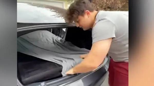 فردی با استفاده از چند وسیله ساده، یک خودروی تسلا را شبیه به چادر مسافرتی کرد.