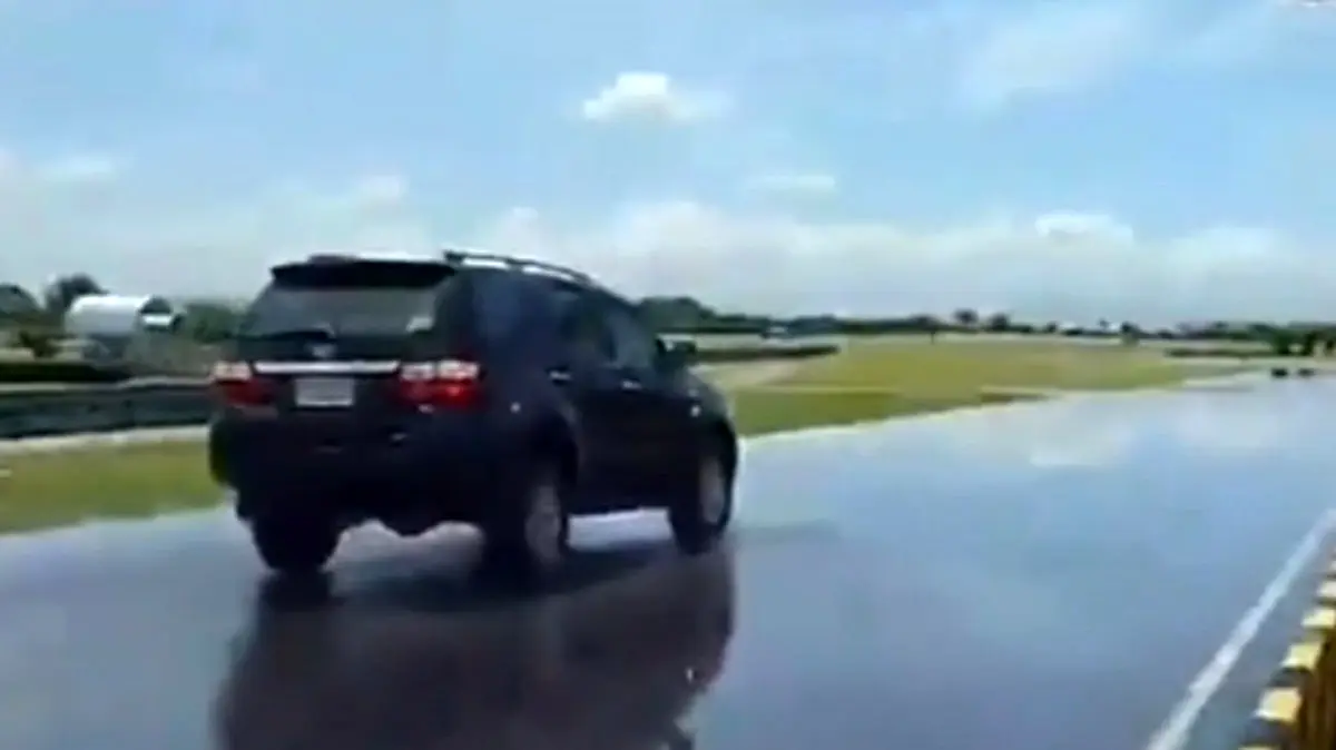 رکنا : فیلمی از تست ترمز تویوتا روی زمین خیس را ببینید.