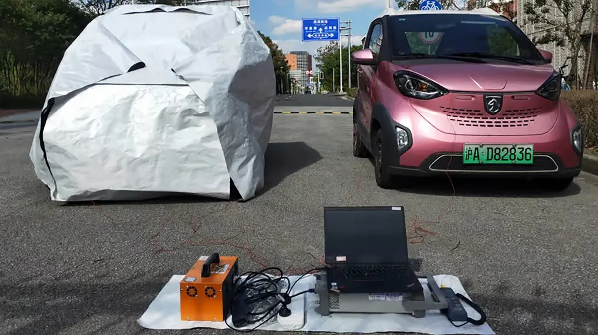 یک خودروی برقی (سمت چپ) با روکش ژانوس در کنار یک همتای بدون روکش هواکسو کیائو آزمایش میشود