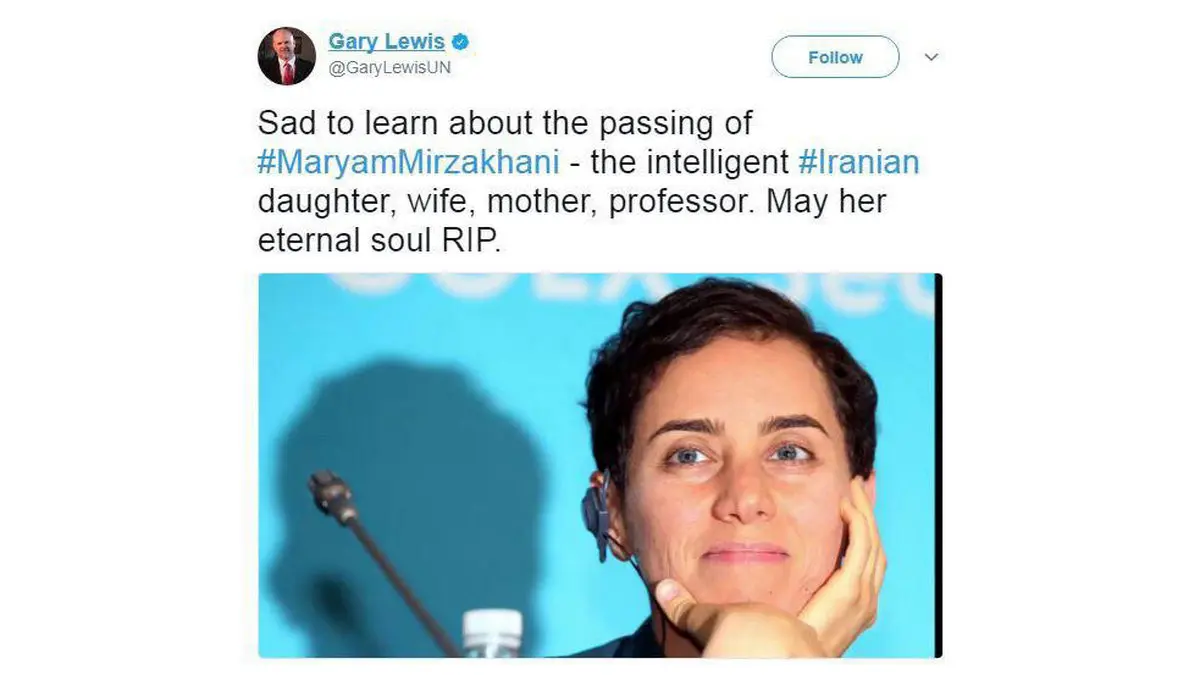 پیام توییتری نماینده سازمان ملل برای مریم میرزاخانی