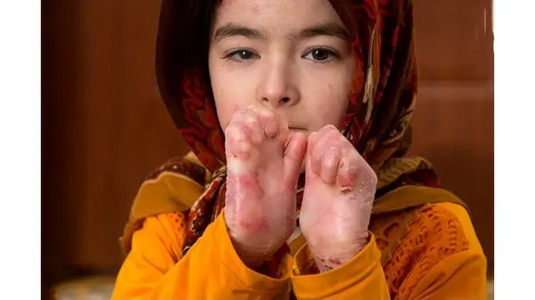 فاطمه مجیدی دختر 16 ساله مبتلا به EB است که به دلیل چسبندگی انگشتان دستش به یکدیگر باید جراحی شود.