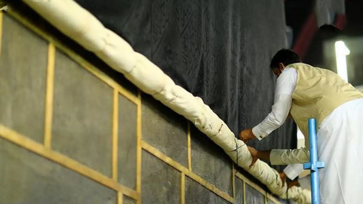 رکنا: براساس عادت سالانه، قرار است قسمت پایین پرده خانه خدا در هفته آینده حدود سه متر بالا برود و حدود 47 متر پارچه سفید به دور آن کشیده شود.