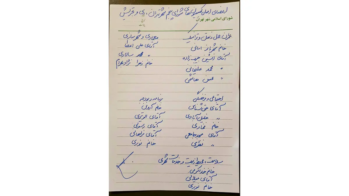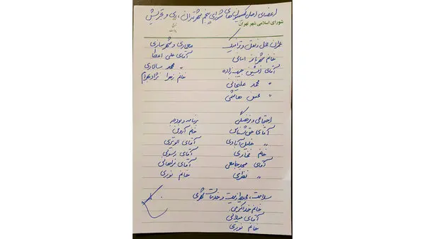 رکنا: لیست اعضای کمیسیون های منتخب شورای شهر تهران که با رای اعضاء به تصویب رسیده است.