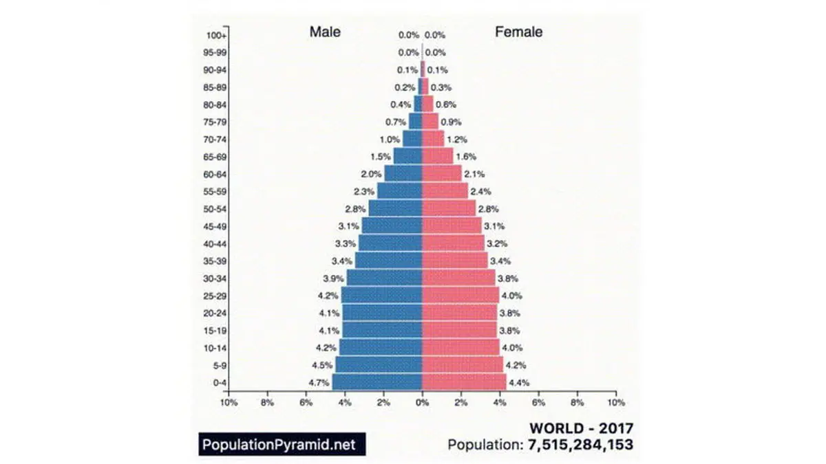 یک هرم جمعیتی که توزیع جمعیت را بر اساس فاکتورهایی چون گروه سنی و جنسیت نشان می‌دهد می‌تواند به ما کمک کند که اطلاعات زیر را به دست آوریم: