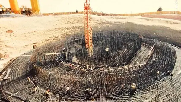 رکنا: این عکس مربوط به قسمت پی و سازه برج میلاد است. این پی دایرهای شکل به قطر ۶۶ متر و ضخامت متوسط ۴ متر است.