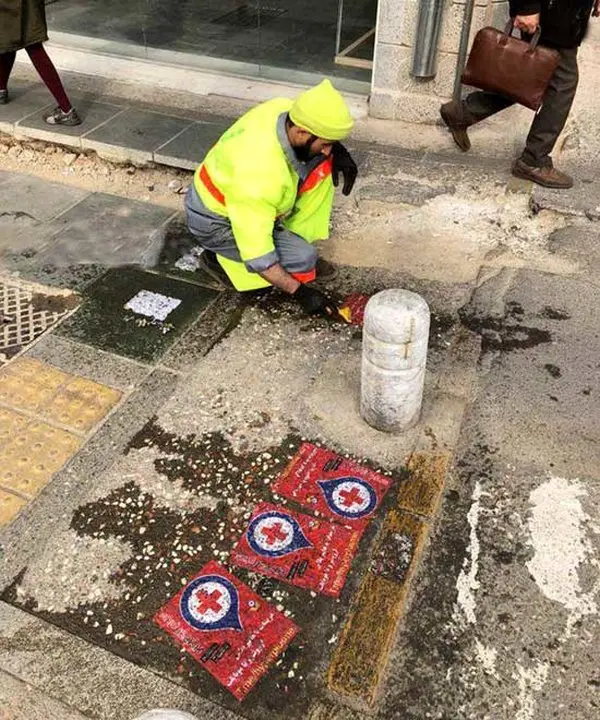 رکنا: وقتی شرکتها برای تبلیغ خود، آگهیها را روی زمین میچسبانند به این فکر نمیکنند که برای پاک کردنش چه مشقتی به بعضیها میدهند.