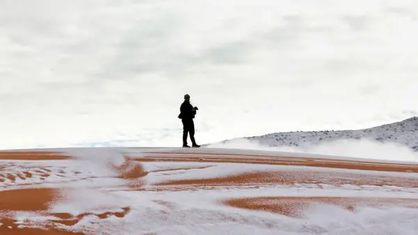 میزان بارش برف در این منطقه 45 سانتی متر بوده که شن و ماسه صحرا را سفید پوش کرده است.